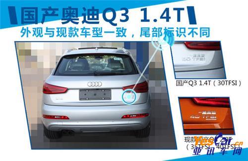搭载1.4T引擎的国产奥迪Q3在外观设计上与现款车型保持一致,只是车身高度要比现款车型低了19mm,证明1.4T车型的身份在于尾部标识,“30TFSI”标识足以证明这一点。配置方面,新车有望匹配MMI系统、电子手刹以及多功能方向盘等配置,体现出了入门级车型并不简配的特点。