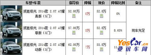 目前店内路虎揽胜极光最高现金优惠7万,现车充足,感兴趣的朋友不妨关注一下,具体降价明细如下表: